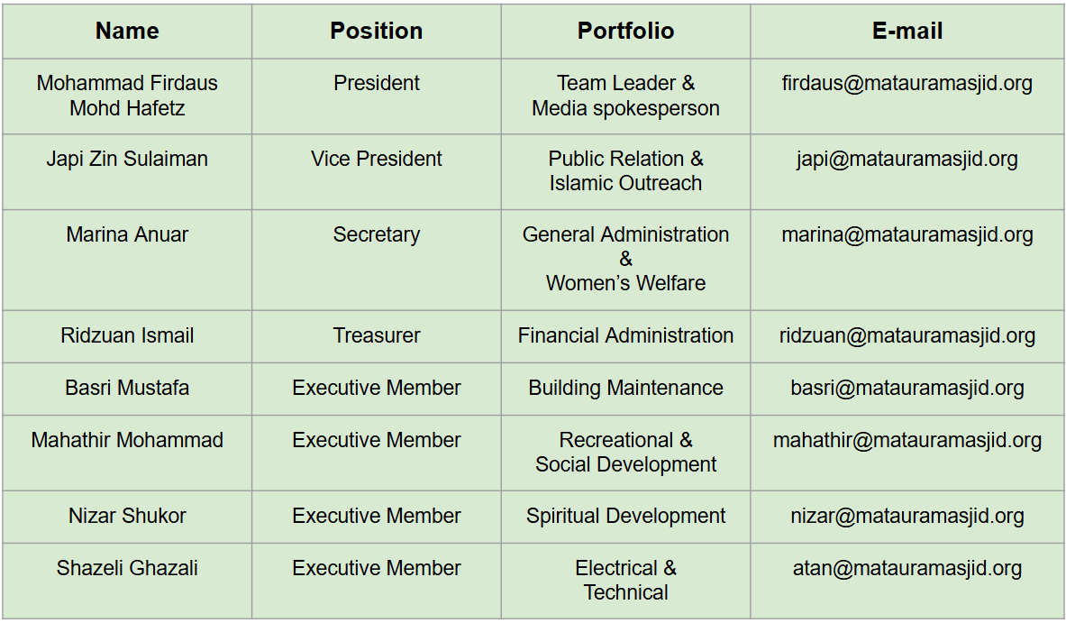 2. We currently have eight committee members namely a president, vice president, secretary & treasurer and 4 other committee members who were elected in the general meeting.